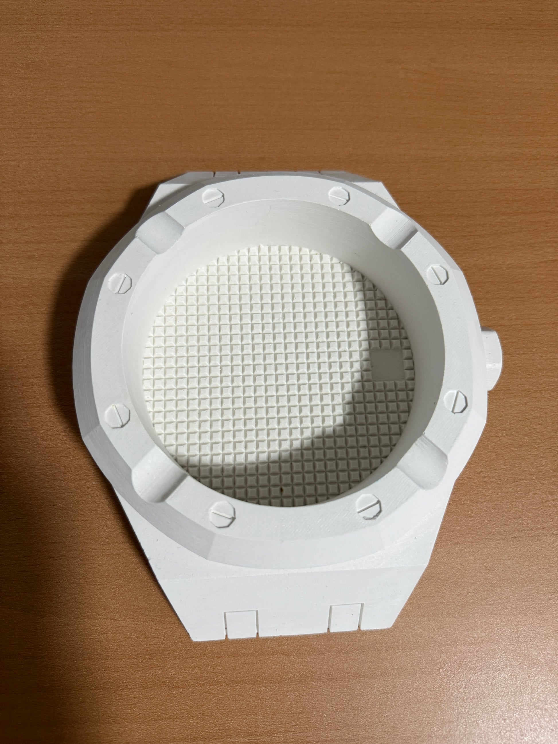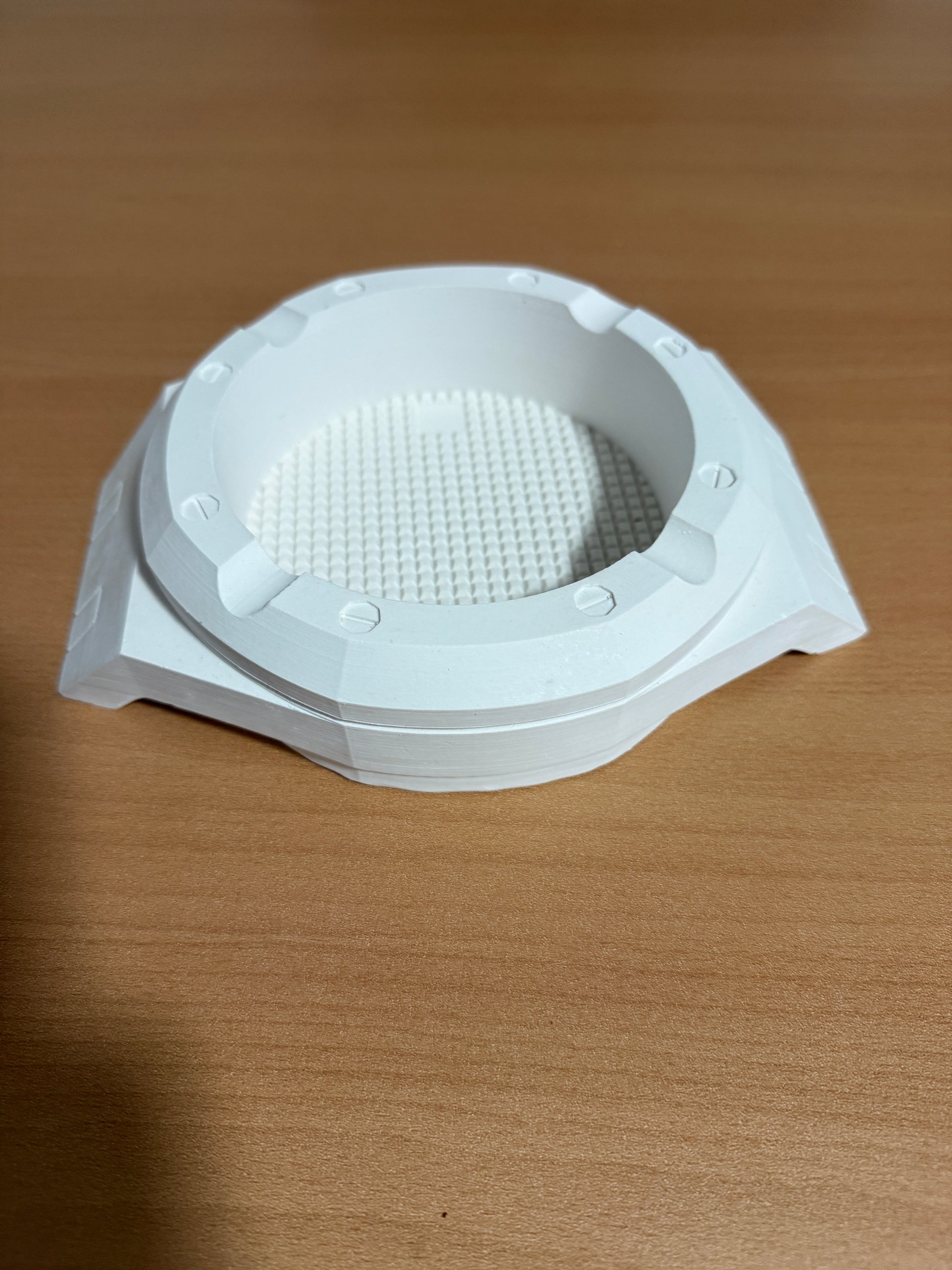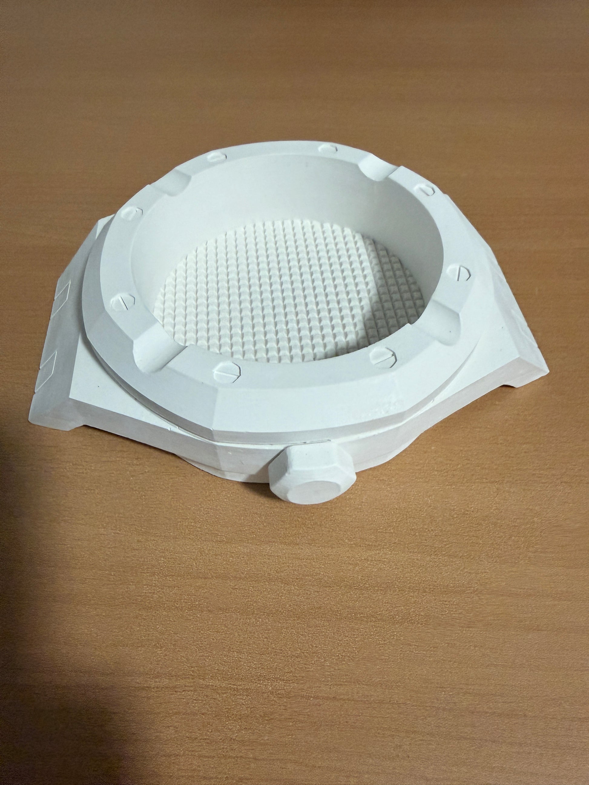 Handgefertigter Aschenbecher aus Keramik in Uhrenoptik.
